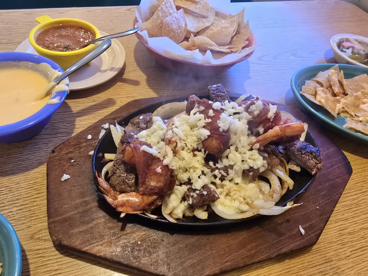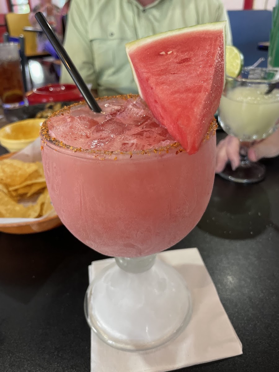 We enjoyed wonderful service and a very delicious Watermelon Margarita- fresh squeezed, delicious and oh so fresh. The cheese used in recipes is the liquid stuff from a can- for my nachos I would have preferred freshly grated. When you are seated out comes chips, queso cheese and jalapeño’s. That was great. Very casual environment- good food. Again the service was exceptional.